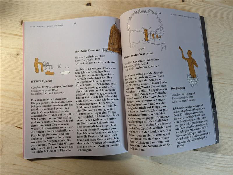 Für das NUN Magazin Konstanz erstelle ich zum Artikel "nass und nackig" Illustrationen zu nassen und nackigen Orten in Konstanz und Kreuzlingen, welche im Artikel in Form eines Städte-Spaziergangs beschrieben werden.